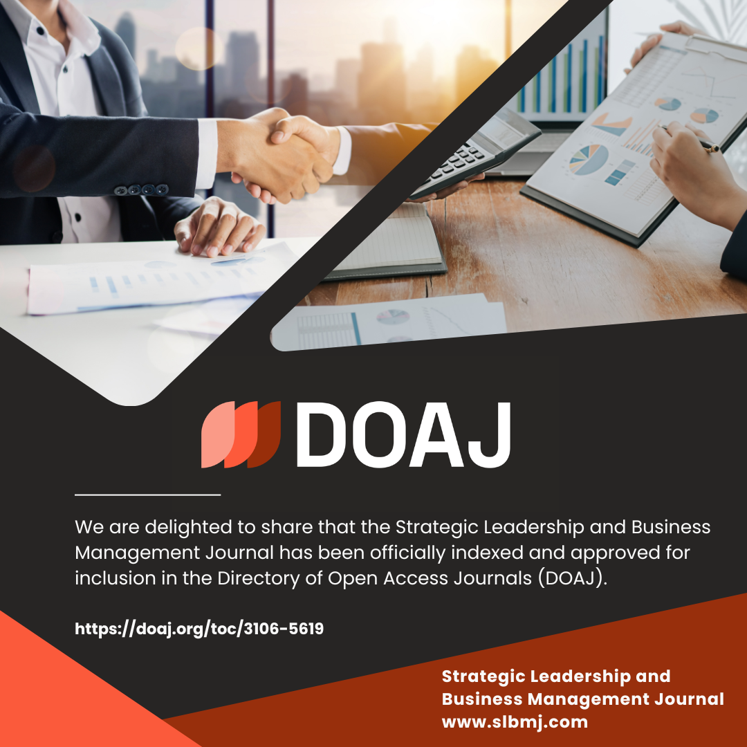 The content published in the Strategic Leadership and Business Management Journal is open access and distributed under the terms of the Creative Commons Attribution 4.0 International License and is FREE for all research and academic purposes with proper acknowledgement and reference to the authors and the Journal.